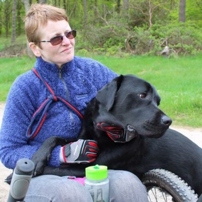 The journey back was quicker, 2 and a half hours, but it was harder for me and at times even more frightening. My poor trike began to creak a bit and we figured I had blown the rear wheel bearings and possibly the gas suspension was giving up the ghost. On a couple of occasions I was being carried down a large step and I was propelled forward so the guys fashioned a makeshift seat-belt from a harness Sean had made for going up. This was very reassuring and I am still trying to find a photo of one of the times the team stopped my tipping over as I think that would be a fab profile pic :-)